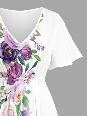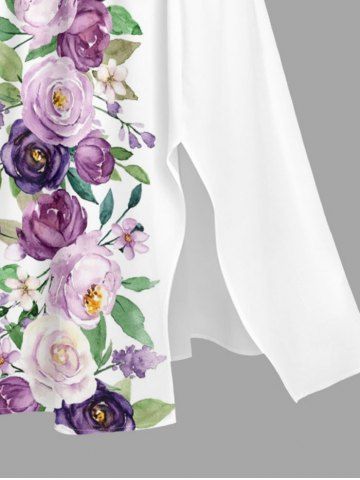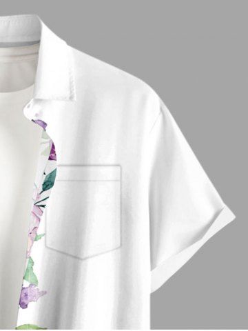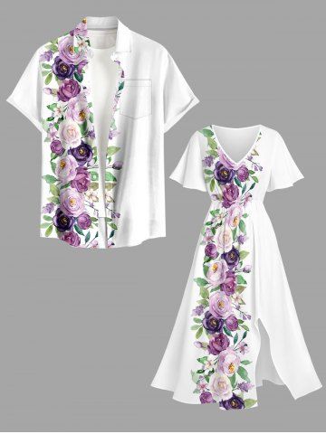 Ensemble de plage hawaïen assorti grande taille à imprimé roses et feuilles pour couples - Blanc - Blanc
