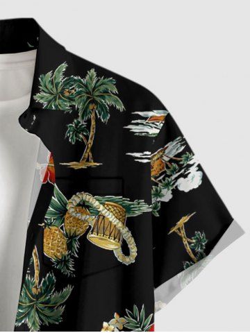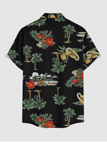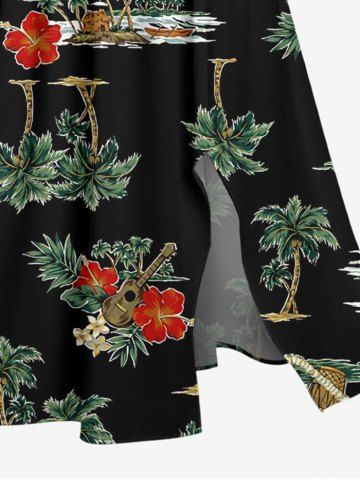 Ensemble de plage hawaïen assorti grande taille à imprimé tête de mort, cocotier et fleurs pour couples - Noir - Noir