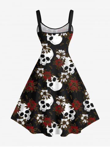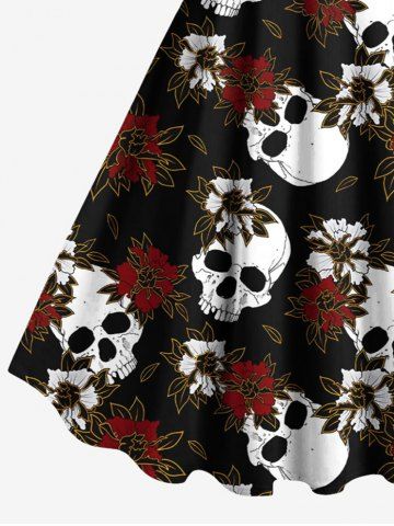 Ensemble de plage hawaïen assorti grande taille à imprimé têtes de mort et fleurs pour couples - Noir - Noir
