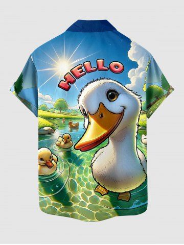 Ensemble de plage hawaïen assorti grande taille avec imprimé canard mignon pour couples - Bleu - Bleu