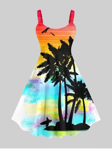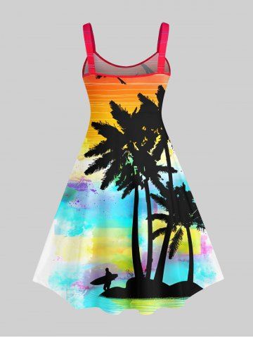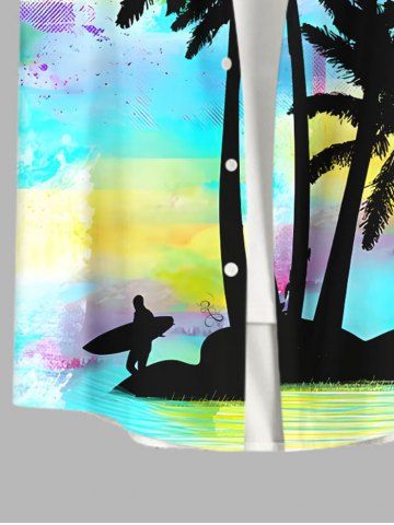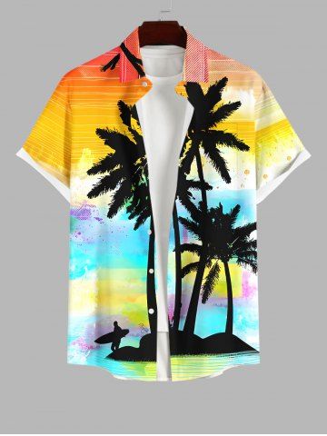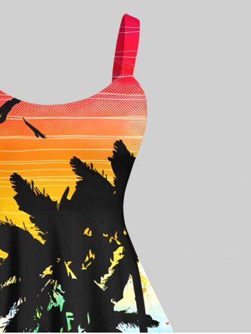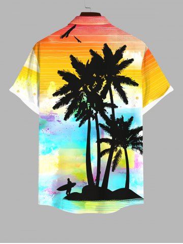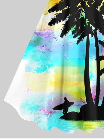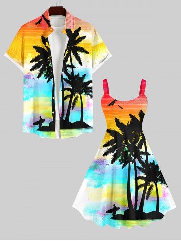 Ensemble de plage hawaïen assorti grande taille, imprimé cocotier, mer et ciel ombré, pour couples - Multi-a
