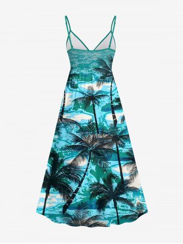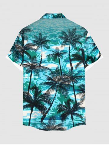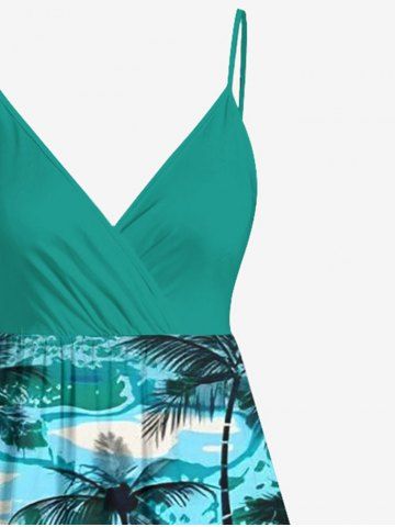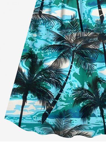 Ensemble de plage hawaïen assorti grande taille imprimé cocotiers et vagues pour couples - Vert - Vert
