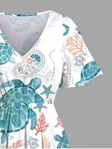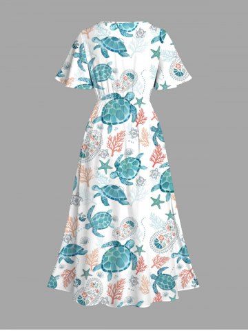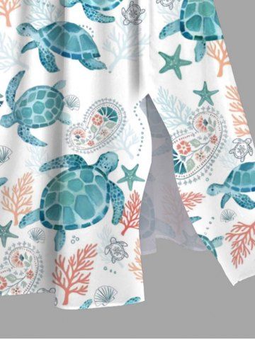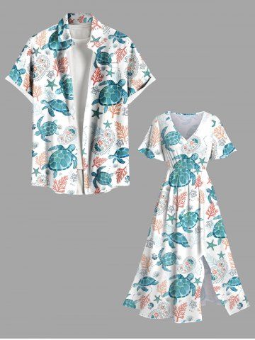 Ensemble de plage hawaïen assorti grande taille pour couples, imprimé tortue, cachemire, fleurs, feuilles et étoiles de mer - Blanc - Blanc