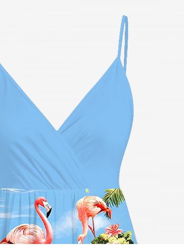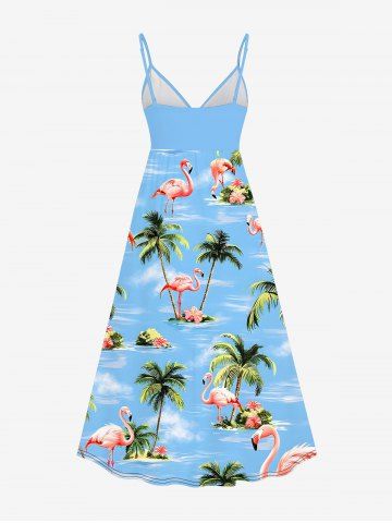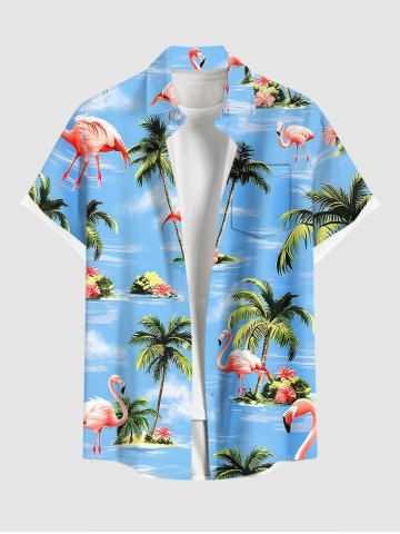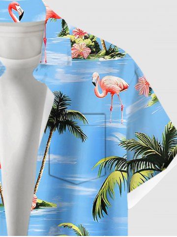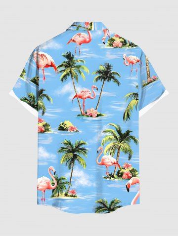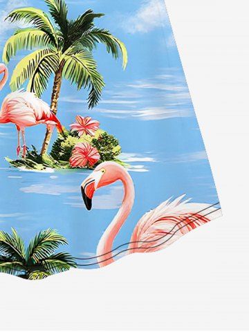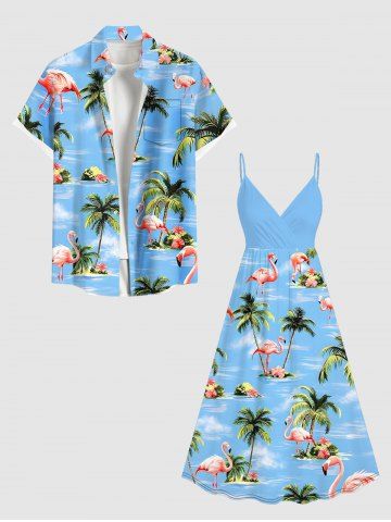 Ensemble de plage hawaïen assorti grande taille pour couples, motif cocotier, flamant rose et hibiscus, imprimé marin - Bleu Clair - Bleu Clair