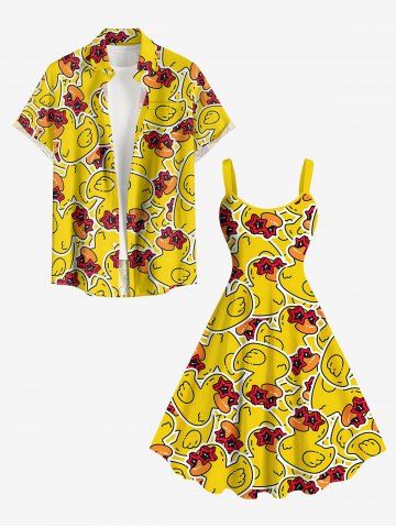 Tenues Hawaïennes Assorties> Ensemble de plage hawaïen assorti grandes tailles à imprimé canards pour couples