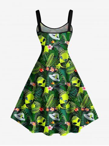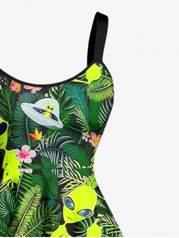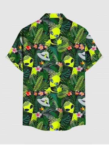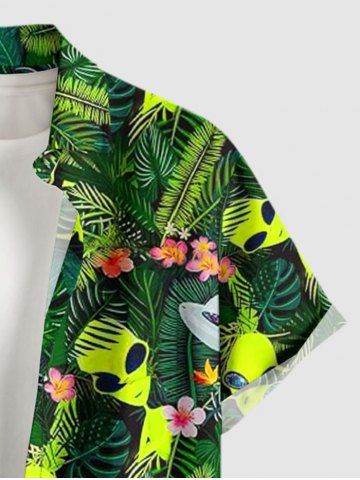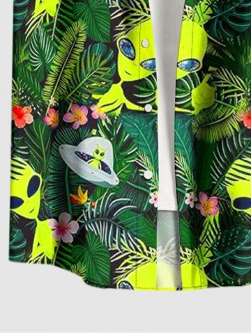 Ensemble de plage hawaïen assorti grandes tailles à imprimé OVNI et feuilles tropicales Elien pour couples - Vert - Vert