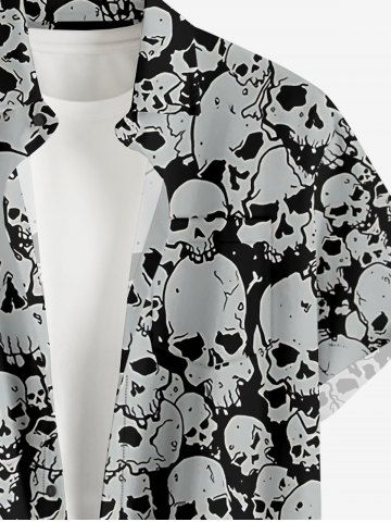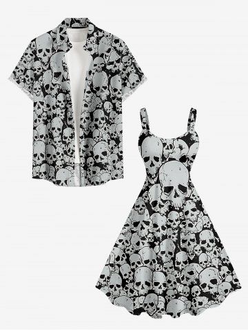 Ensemble de plage hawaïen assorti grandes tailles à imprimé têtes de mort pour couples - Noir - Noir