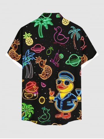 Ensemble de plage hawaïen assorti grandes tailles pour couples, imprimé canards, cocotiers, pastèques et ananas. - Noir - Noir