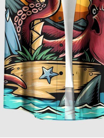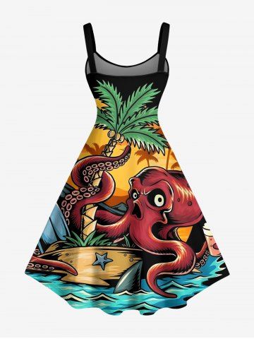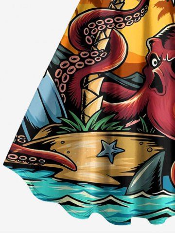 Tenues Hawaïennes Assorties> Ensemble de plage hawaïen assorti pour couples, grande taille, motif pieuvre et cocotier