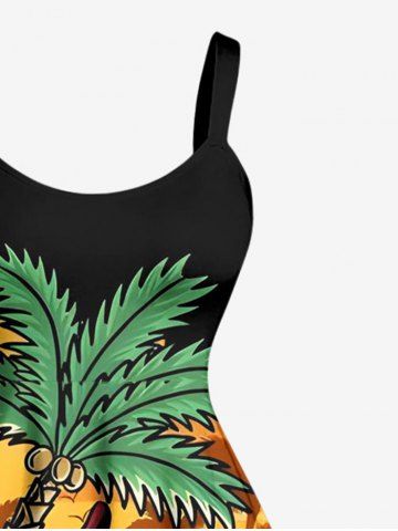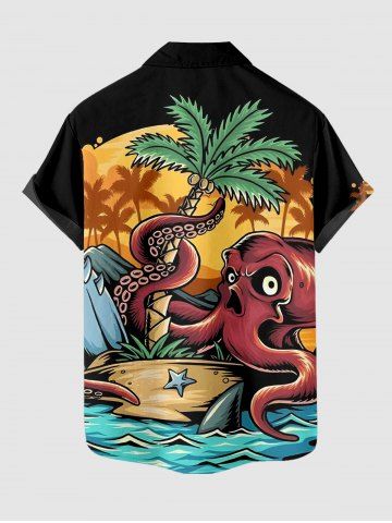 Ensemble de plage hawaïen assorti pour couples, grande taille, motif pieuvre et cocotier - Noir - Noir