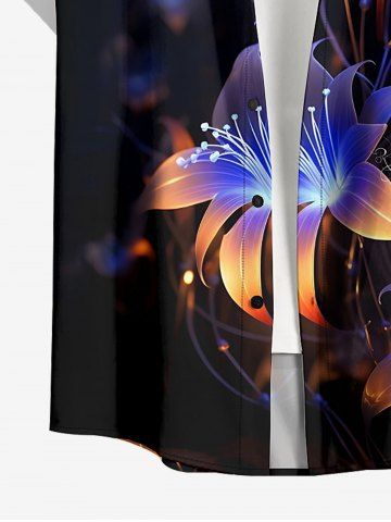 Ensemble de plage hawaïen assorti pour couples, imprimé 3D à fleurs pailletées, grandes tailles - Noir - Noir