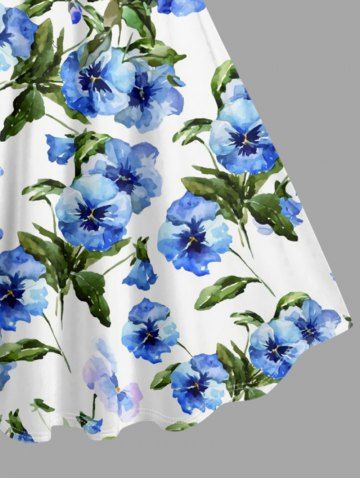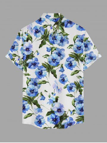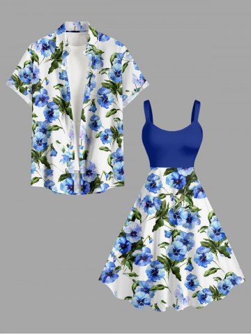 Ensemble de plage hawaïen assorti pour couples, imprimé aquarelle fleurs et feuilles, grandes tailles - Bleu - Bleu