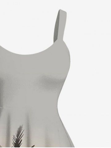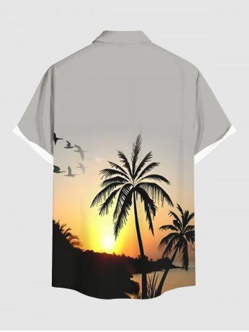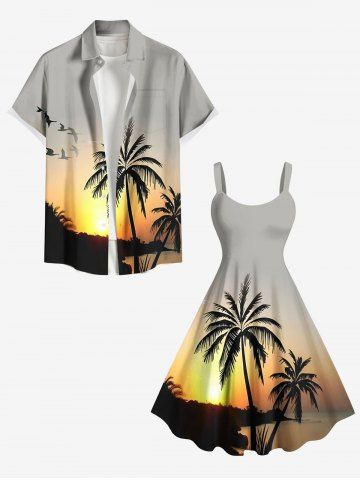 Ensemble de plage hawaïen assorti pour couples, imprimé coucher de soleil sur cocotier, grandes tailles - Gris Clair - Gris Clair