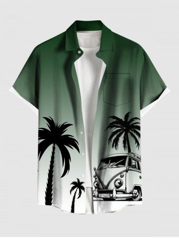 Ensemble de plage hawaïen assorti pour couples, imprimé dégradé tie-dye avec motif de noix de coco et bus, grandes tailles - Vert - Vert