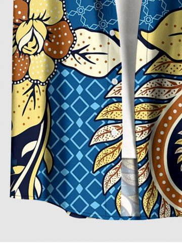 Ensemble de plage hawaïen assorti pour couples, imprimé ethnique floral en forme de courbe, grandes tailles - Bleu - Bleu