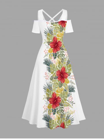 Ensemble de plage hawaïen assorti pour couples, imprimé feuilles tropicales et fleurs d'hibiscus, grandes tailles - Blanc - Blanc