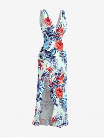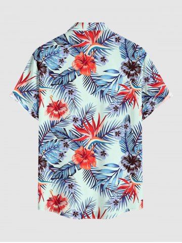 Ensemble de plage hawaïen assorti pour couples, imprimé feuilles tropicales et fleurs d'hibiscus, grandes tailles - Bleu - Bleu