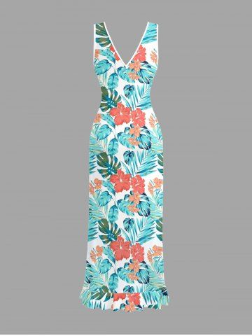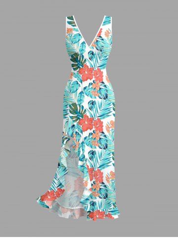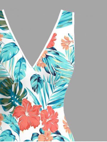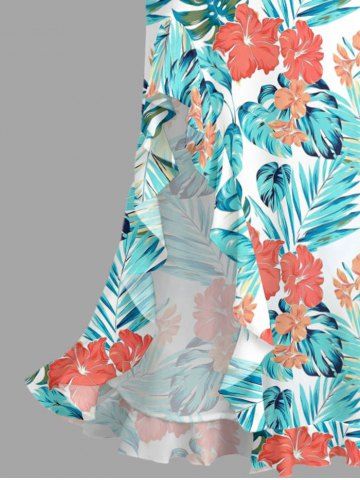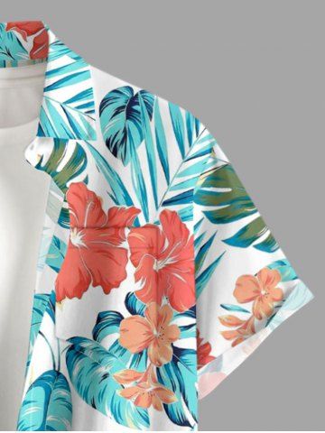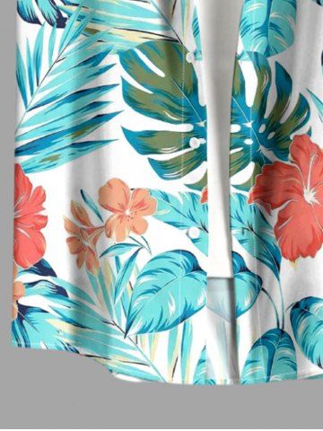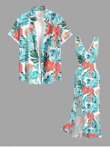 Ensemble de plage hawaïen assorti pour couples, imprimé feuilles tropicales et fleurs d'hibiscus, grandes tailles - Turquoise - Turquoise