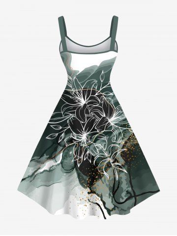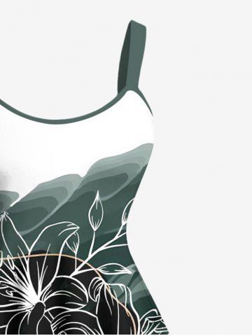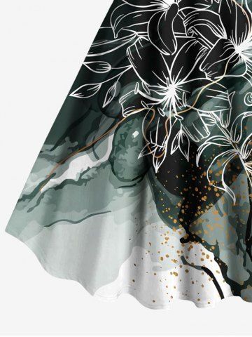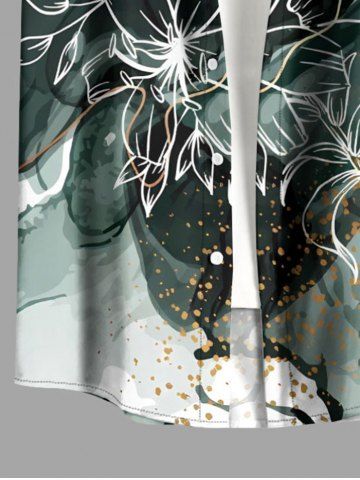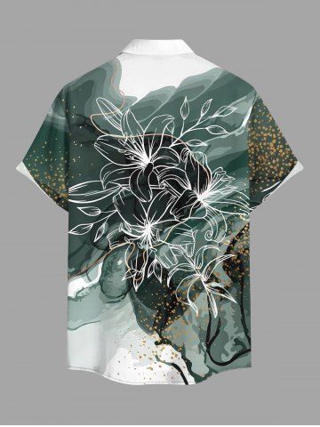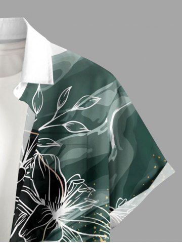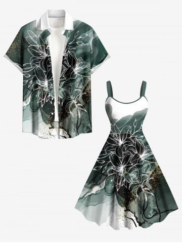 Ensemble de plage hawaïen assorti pour couples, imprimé fleurs et feuilles colorblock, éclaboussures de peinture, grandes tailles - Vert Profond