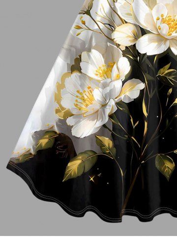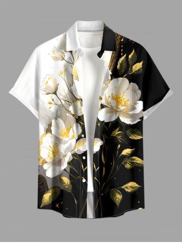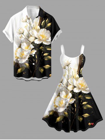 Ensemble de plage hawaïen assorti pour couples, imprimé fleurs et feuilles, grandes tailles - Blanc - Blanc