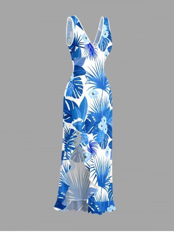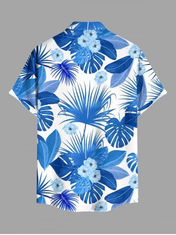 Ensemble de plage hawaïen assorti pour couples, imprimé fleurs et feuilles tropicales, grandes tailles - Bleu - Bleu