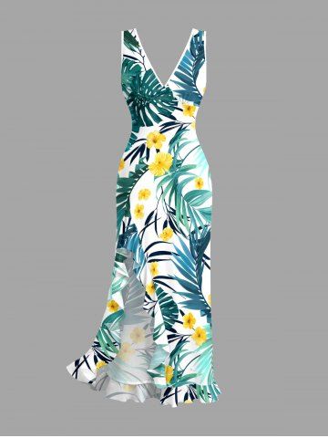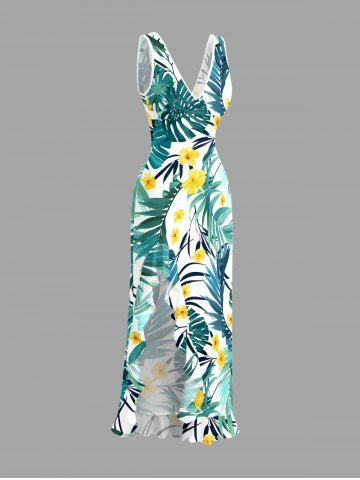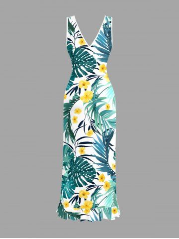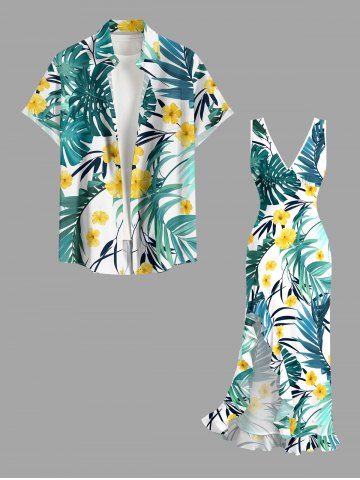 Ensemble de plage hawaïen assorti pour couples, imprimé fleurs et feuilles tropicales, grandes tailles - Vert - Vert