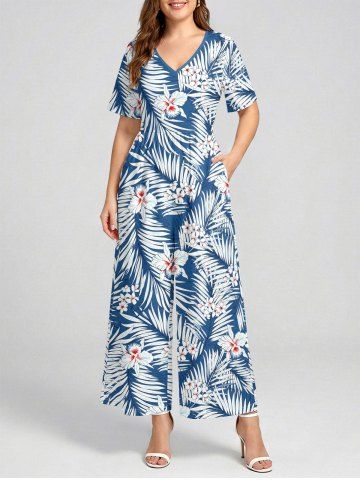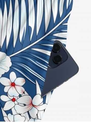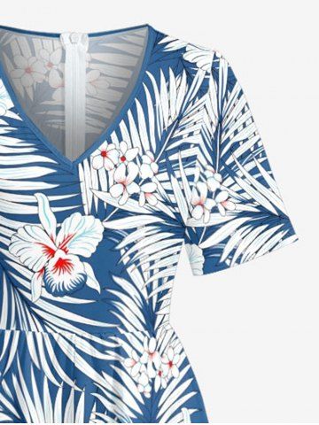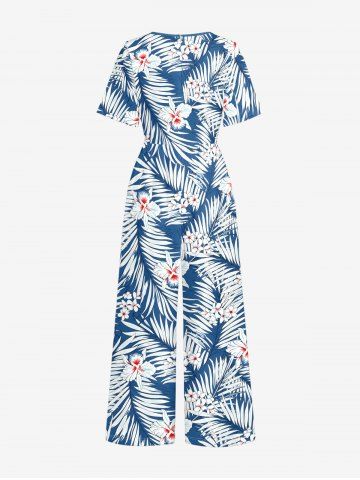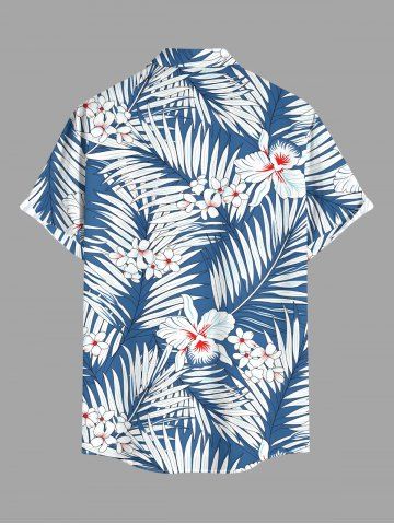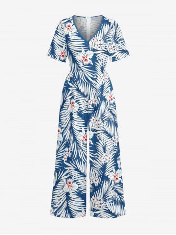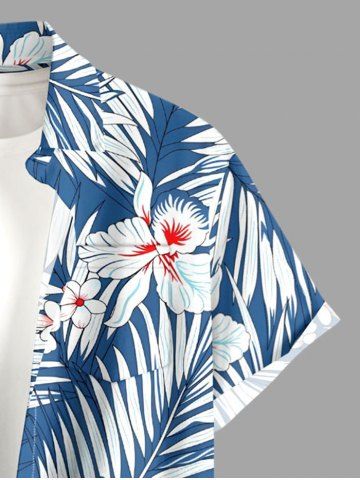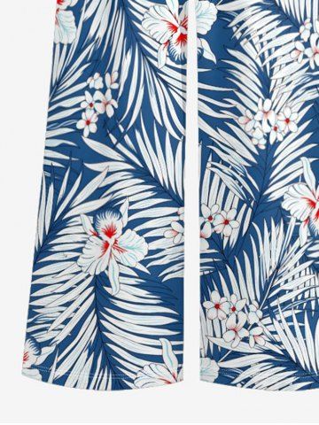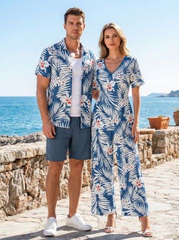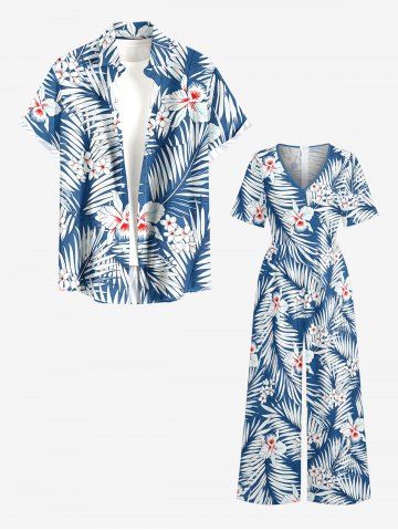 Ensemble de plage hawaïen assorti pour couples, imprimé fleurs et feuilles tropicales, grandes tailles - Bleu - Bleu