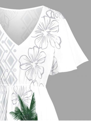 Tenues Hawaïennes Assorties> Ensemble de plage hawaïen assorti pour couples, imprimé géométrique de fleurs de cocotier, grandes tailles