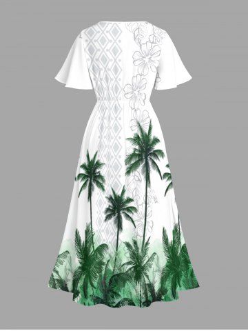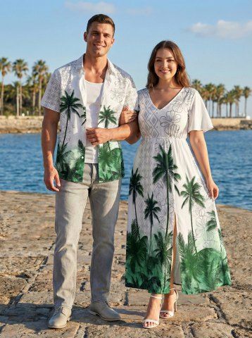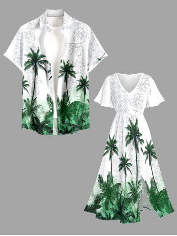 Ensemble de plage hawaïen assorti pour couples, imprimé géométrique de fleurs de cocotier, grandes tailles - Vert - Vert