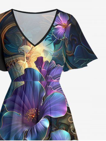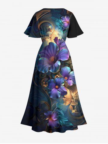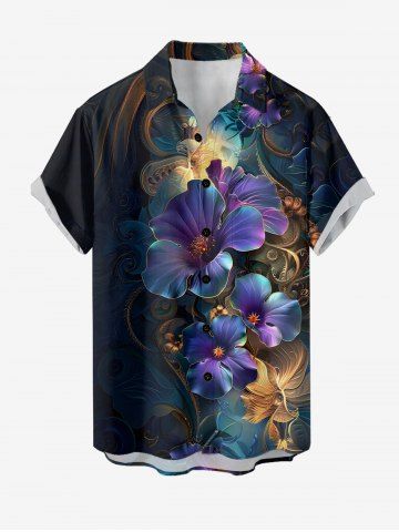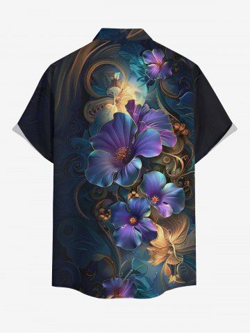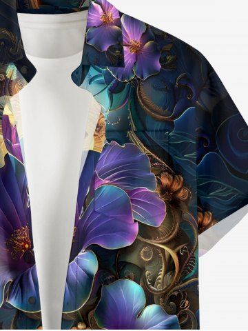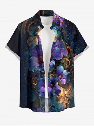 Tenues Hawaïennes Assorties> Ensemble de plage hawaïen assorti pour couples, imprimé métallique fleurs et feuilles d'hibiscus, grandes tailles