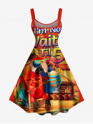 Ensemble de plage hawaïen assorti pour couples, imprimé perroquet et cocotier, grande taille - Rouge - Rouge