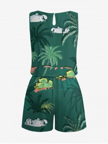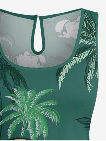 Ensemble hawaïen assorti chemise et barboteuse grande taille, imprimé cocotier et nuages, pour couples - Vert Profond