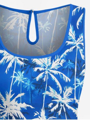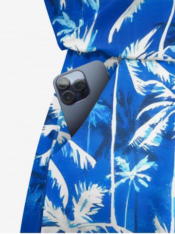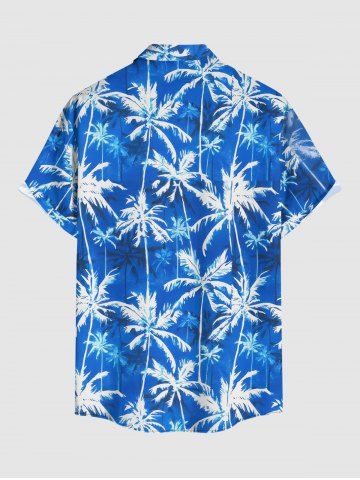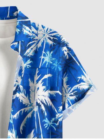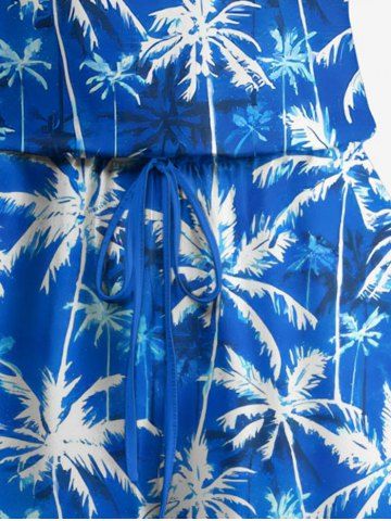 Ensemble hawaïen assorti chemise et barboteuse grande taille imprimé cocotier pour couples - Bleu - Bleu