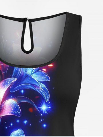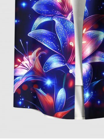 Tenues Hawaïennes Assorties> Ensemble hawaïen assorti chemise et barboteuse grande taille, tenue de plage à imprimé floral, étoiles et paillettes 3D pour couples