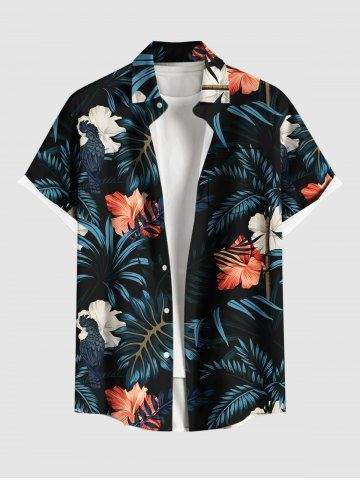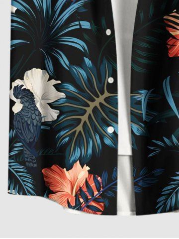 Ensemble hawaïen assorti chemise et barboteuse grande taille, tenue de plage à imprimé floral tropical et hibiscus pour couples - Noir - Noir