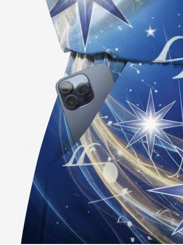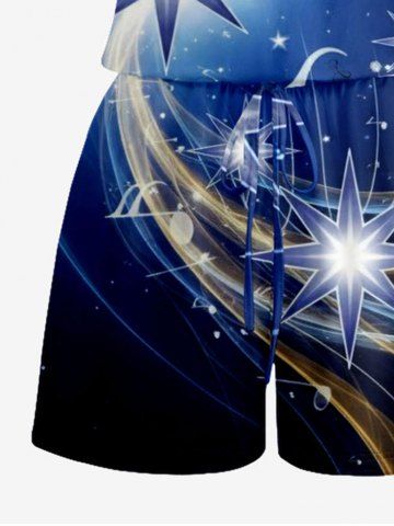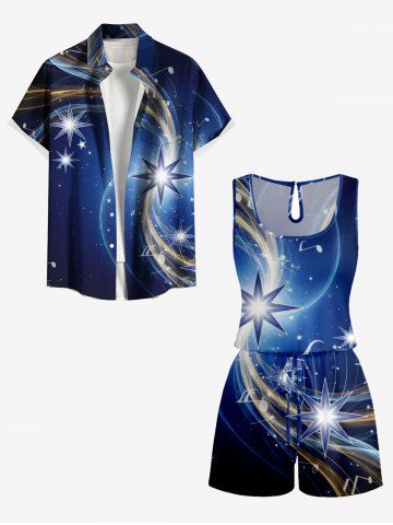 Ensemble hawaïen assorti chemise et barboteuse grande taille, tenue de plage à imprimé galaxie ombré étoilé pour couples - Bleu De Minuit