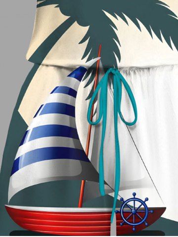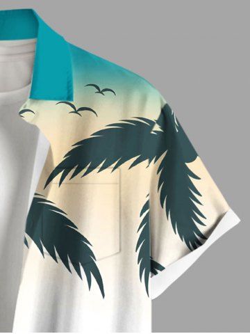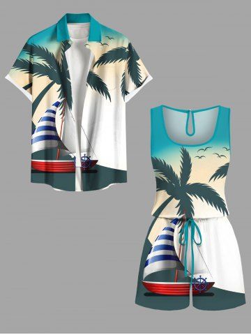 Ensemble hawaïen assorti chemise et barboteuse grande taille, tenue de plage à imprimé ombré cocotier et voilier pour couples - Vert - Vert
