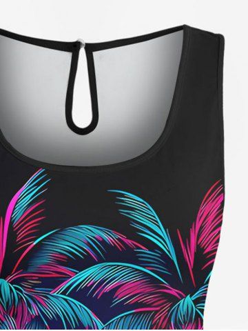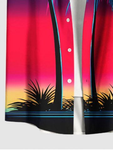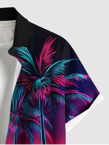 Ensemble hawaïen assorti chemise et barboteuse grande taille, tenue de plage à imprimé ombré cocotier pour couples - Noir - Noir