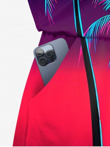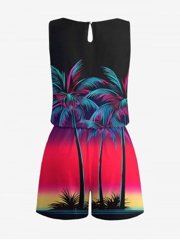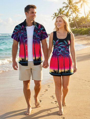 Tenues Hawaïennes Assorties> Ensemble hawaïen assorti chemise et barboteuse grande taille, tenue de plage à imprimé ombré cocotier pour couples