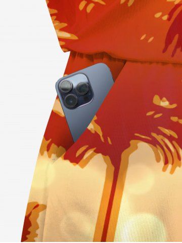 Ensemble hawaïen assorti chemise et barboteuse grande taille, tenue de plage imprimée cocotiers et pois lumineux pour couples - Orange - Orange