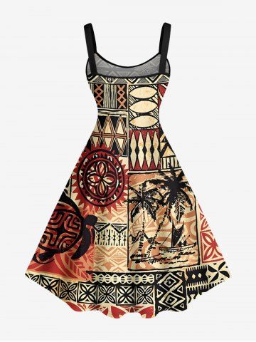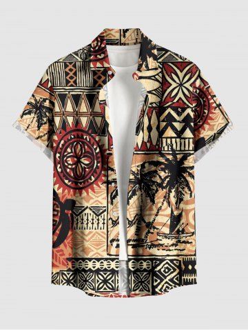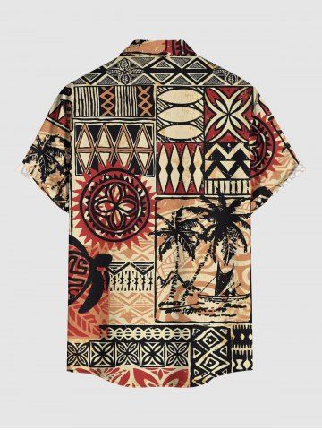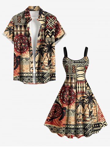 Ensemble hawaïen assorti pour couple, imprimé africain, motif géométrique de cocotiers et de paysage marin. - Bronze