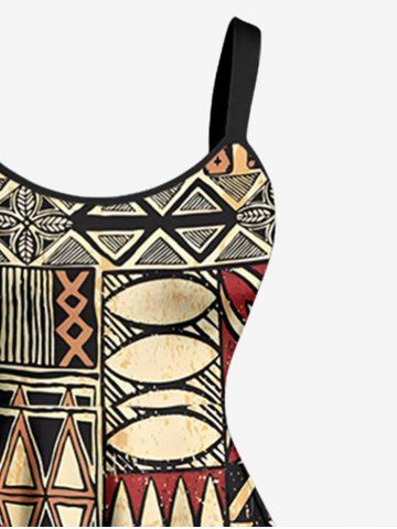 Tenues Hawaïennes Assorties> Ensemble hawaïen assorti pour couple, imprimé africain, motif géométrique de cocotiers et de paysage marin.