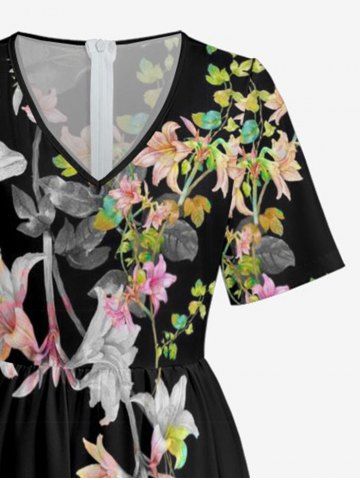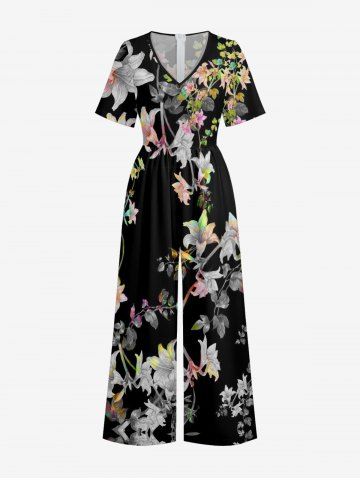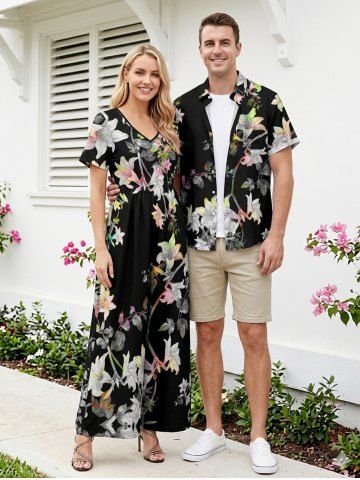 Flower Branch Print Matching Hawaii Beach Outfit For Couples - Noir - Noir