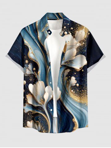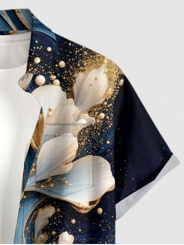 Flower Curve Print Plus Size Matching Hawaii Beach Outfit For Couples - Bleu De Minuit