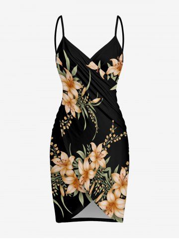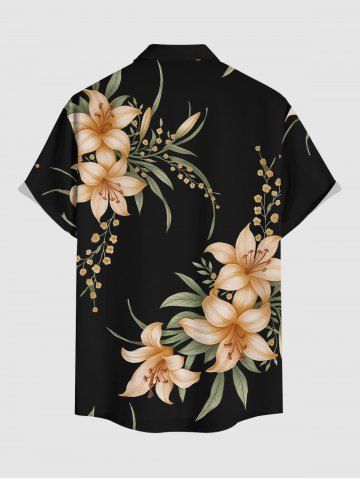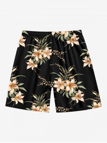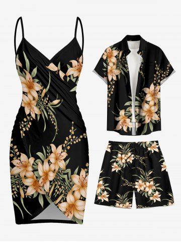 Flower Leaf Branch Print Plus Size Matching Hawaii Beach Outfit For Couples - Noir - Noir