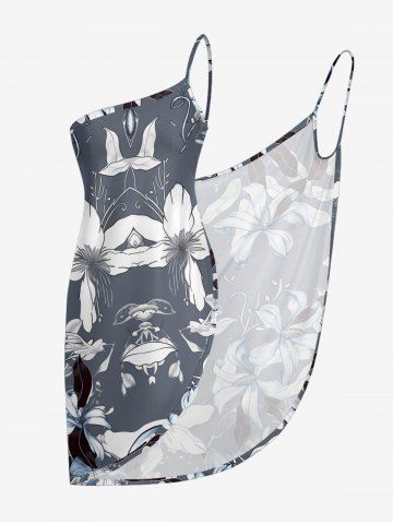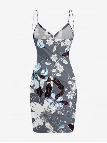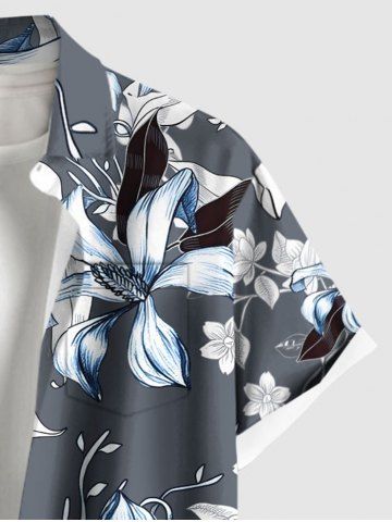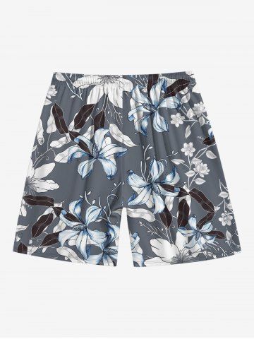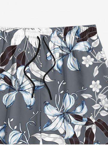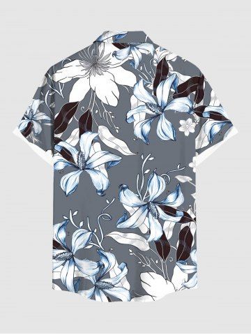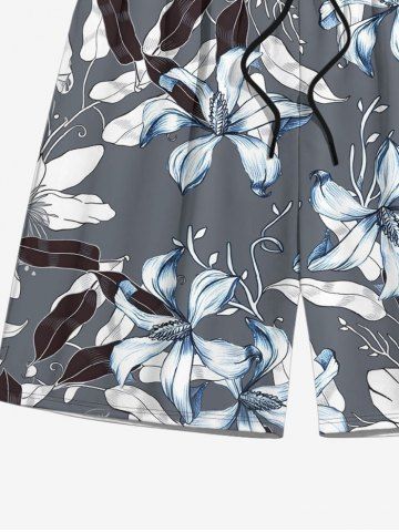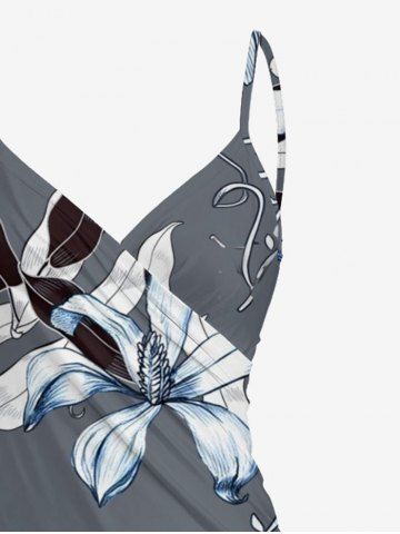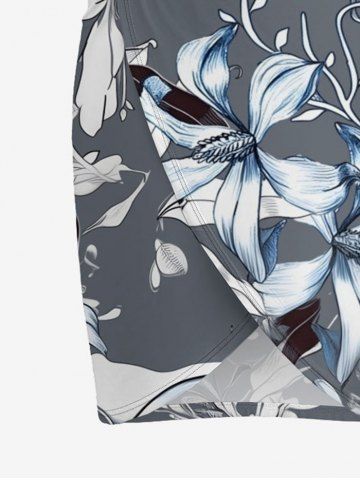 Flower Leaf Print Plus Size Matching Hawaii Beach Outfit For Couples - Gris - Gris
