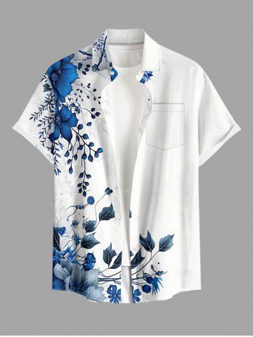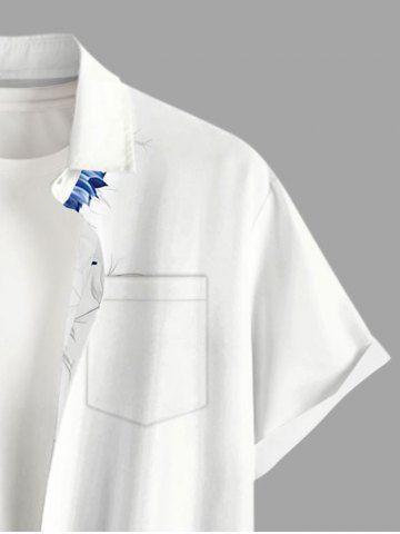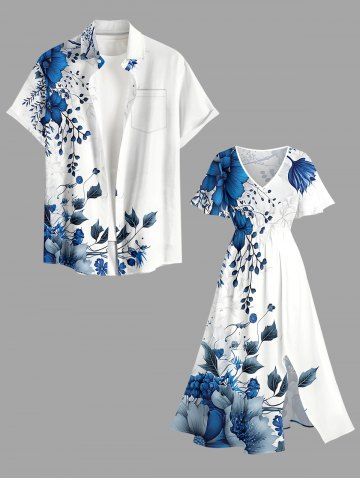 Flower Leaf Print Plus Size Matching Hawaii Beach Outfit For Couples - Bleu - Bleu
