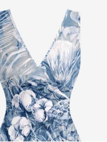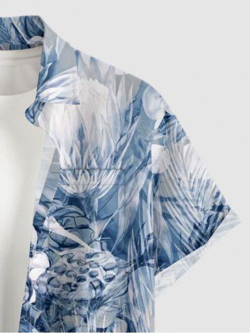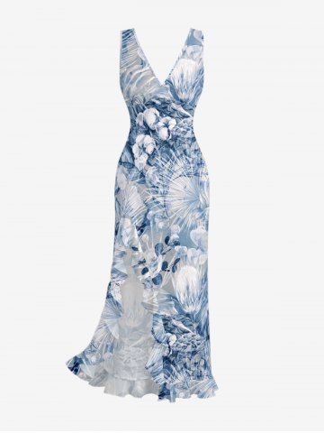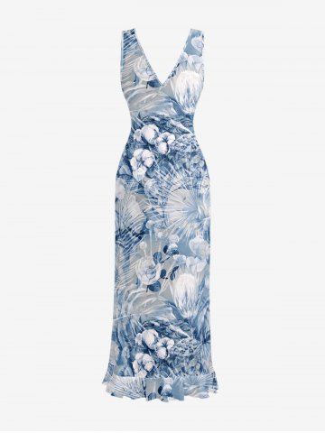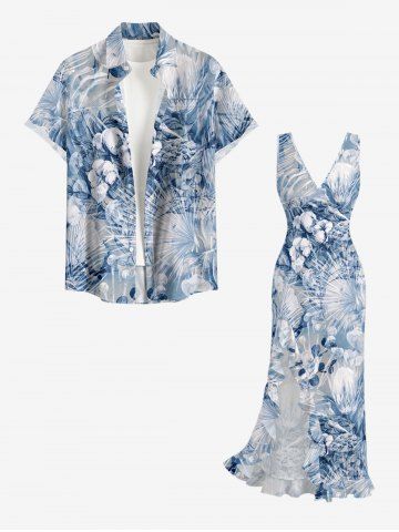 Flower Tropical Leaf Print Matching Hawaii Beach Outfit For Couples - Bleu - Bleu