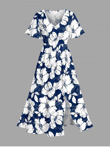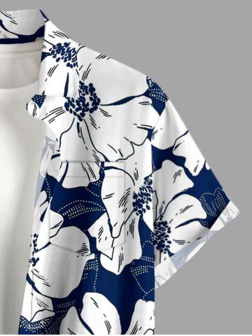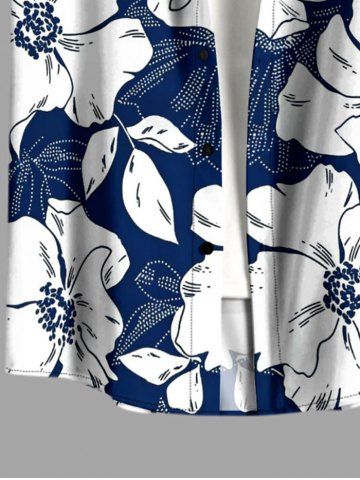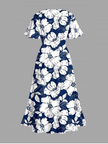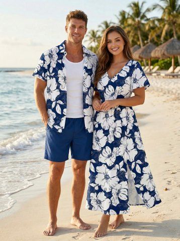 Flowers Leaf Print Plus Size Matching Hawaii Beach Outfit For Couples - Bleu - Bleu
