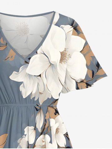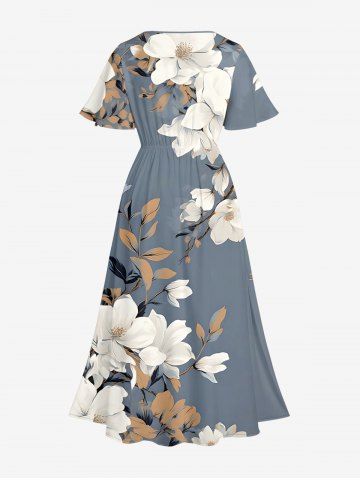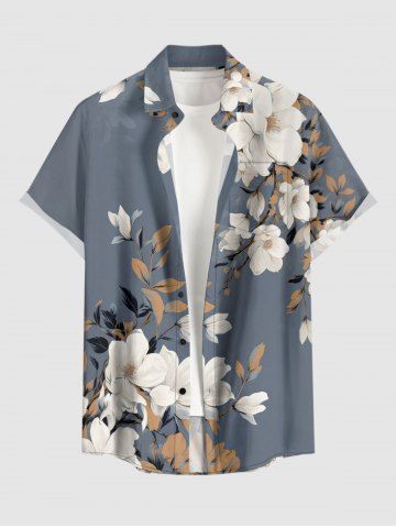 Flowers Leaf Print Plus Size Matching Hawaii Beach Outfit For Couples - Gris Clair - Gris Clair